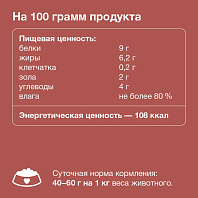 В состав входит кальций для развития и сохранения крепких зубов и костей, протеин для нормального функционирования организма, а также витамин А для поддержания остроты зрения, тщательно сбалансированный комплекс Омега-кислот и биотин для здоровой кожи и шерсти.