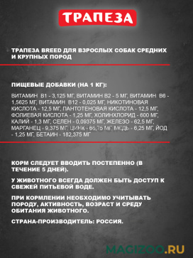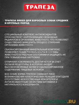 Сухой корм ТРАПЕЗА BREED для взрослых собак средних и крупных пород (20 кг)