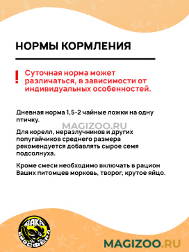 Полноценный сбалансированный корм для мелких и средних попугаев, соответствующий рациону птиц в естественной среде обитания.