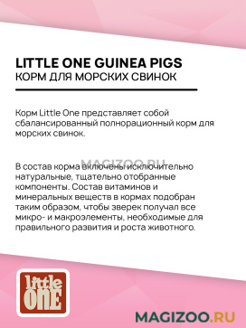 Корм Little One представляет собой сбалансированный полнорационный корм для морских свинок.
