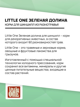 Little One Зеленая долина для шиншилл – корм для декоративных животных, в состав которого входит 60 разновидностей трав.