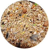 Злаки, семена, минеральные вещества (измельченные ракушки 4 %), хлебопродукты (печенье 3 %), фрукты - 1 %, орехи.
