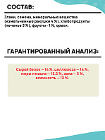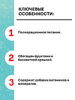 Корм обогащен фруктами и бисквитной крошкой. Обеспечит сбалансированную и разнообразную диету.