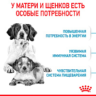 Полнорационный корм для щенков средних размеров в период отъема до 2-месячного возраста, беременных и кормящих сук. Для сук (вес взрослой собаки от 10 до 25 кг) в последней трети беременности и во время лактации.