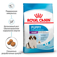 Полнорационный корм для гармоничного роста и развития щенков гигантских пород (вес взрослой собаки более 45 кг) в возрасте с 2 до 8 месяцев.