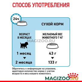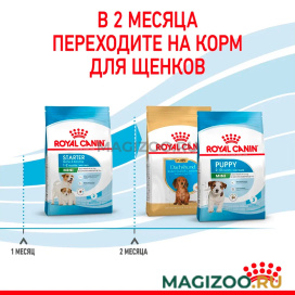 Через 8 недель потребности вашего щенка в питательных веществах изменятся. Ему будет необходим другой рацион, разработанный специально для следующей фазы роста. В этом возрасте вы сможете перевести своего питомца на корм ROYAL CANIN Mini Puppy.