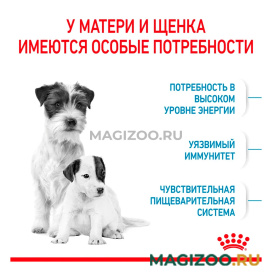- Специально разработанный рацион удовлетворяет высокие энергетические потребности матери мелких размеров, а также поддерживает здоровое развитие новорожденных щенков.