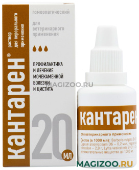Кантарен рарствор для перорального применения 20 мл это лекарственный препарат, применяемый при заболеваниях почек и мочевыводящих путей, циститах.