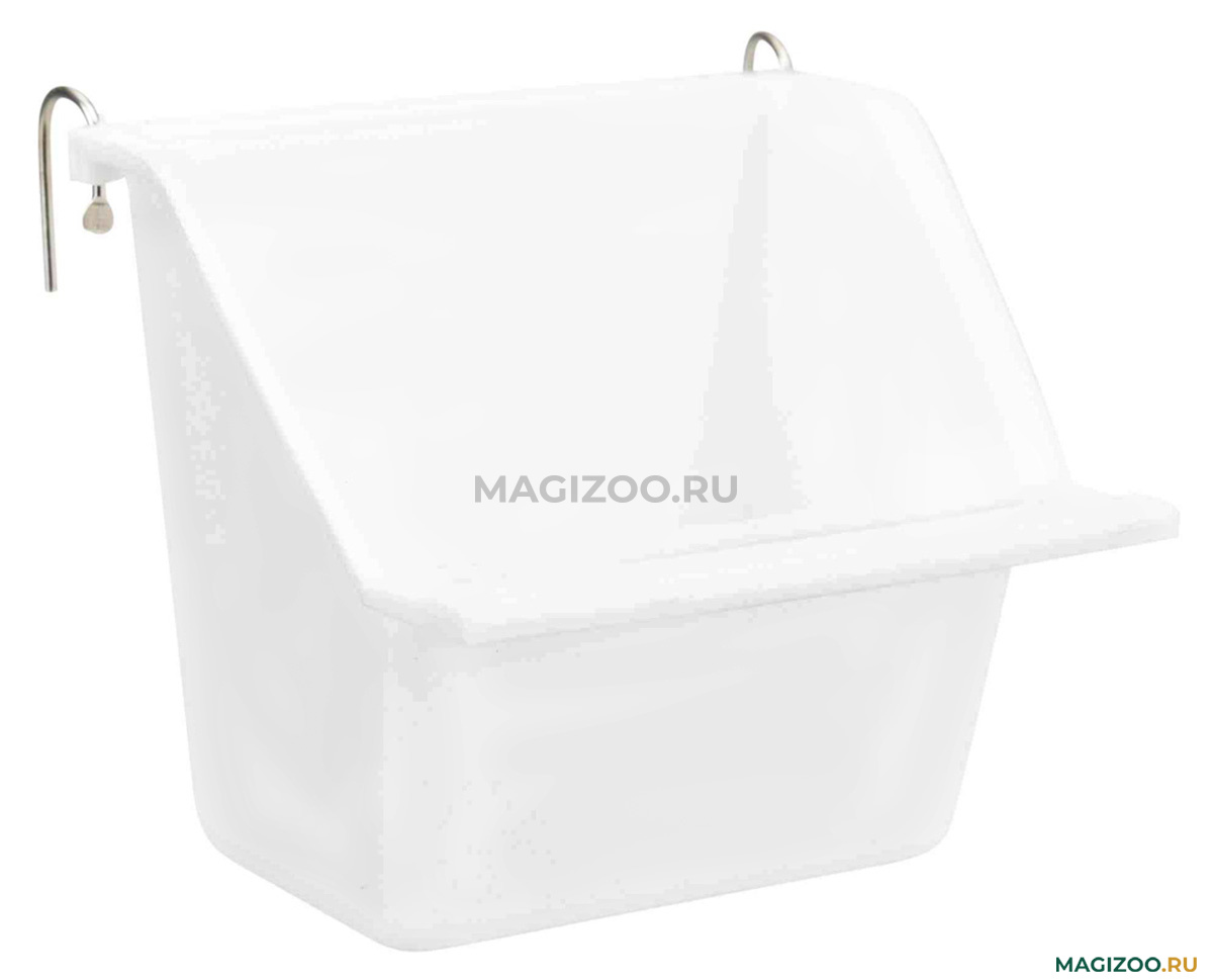 Кормушки крепятся специальными крючками к стенке клетки, плотно фиксируются. В них не попадает мусор, не просыпается зерно. Есть специальная перекладина для насеста для комфорта Вашего пернатого друга.