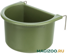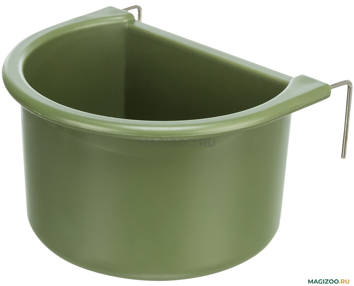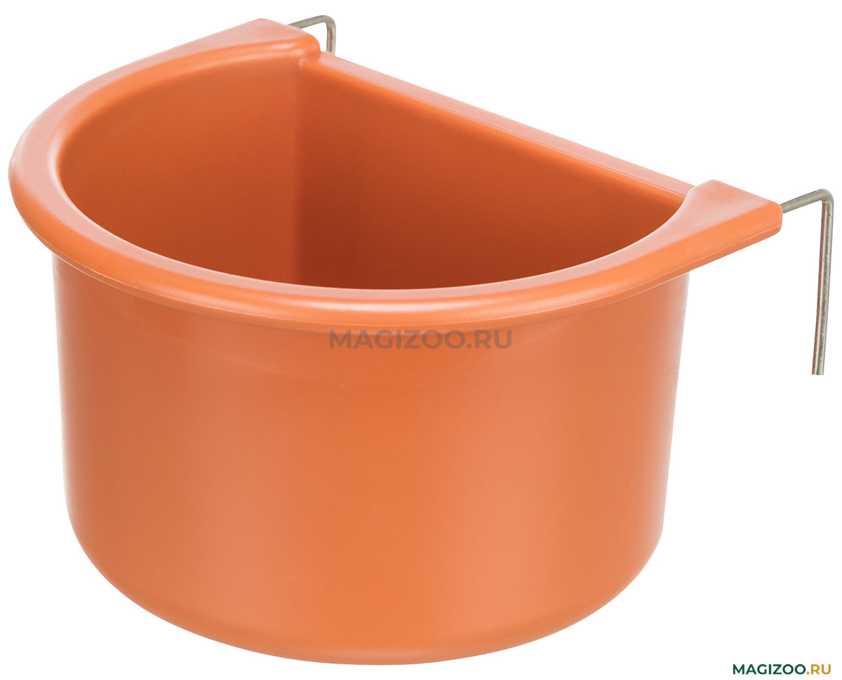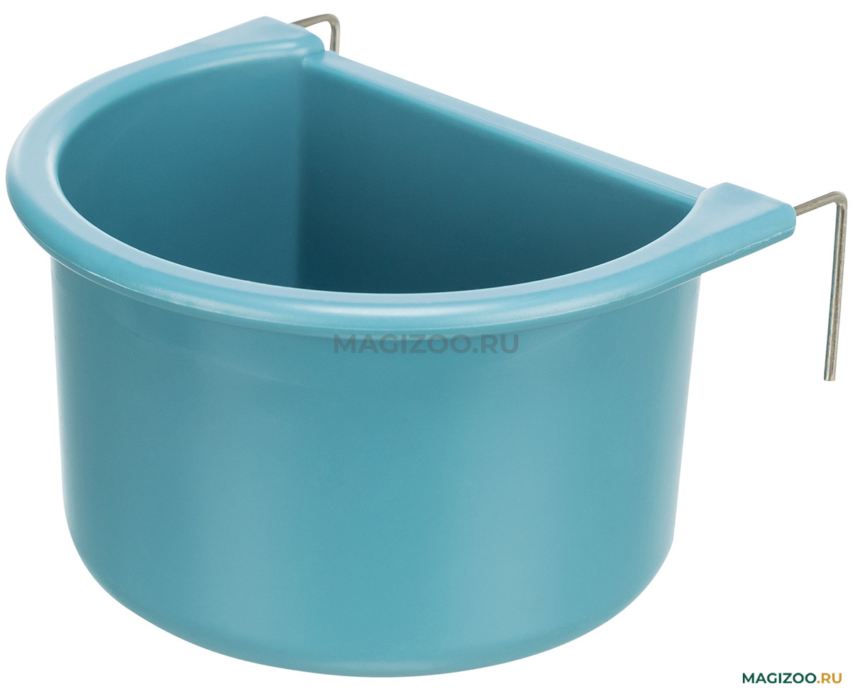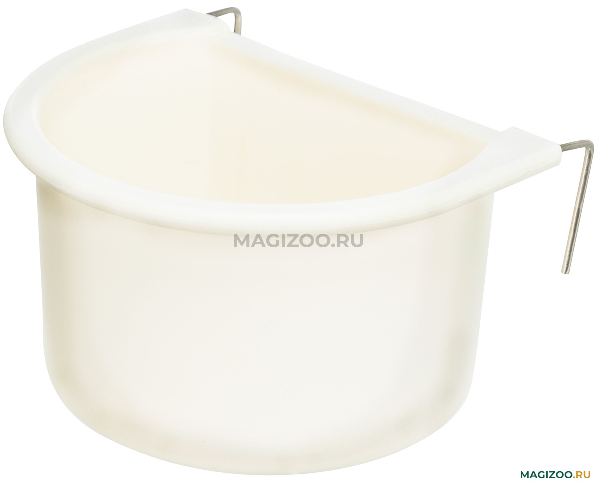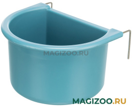 Навесная кормушка для декоративных птиц. Легко фиксируется за решетку клетки в любом удобном месте. Благодаря металлическим крючкам устойчиво держится.