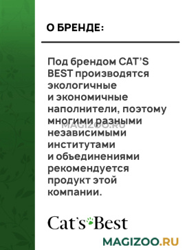 Под брендом CAT’S BEST производятся экологичные и экономичные наполнители, поэтому многими разными независимыми институтами и объединениями рекомендуется продукт этой компании.