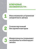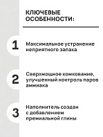 - содержит активированный уголь, обеспечивающий эффективную борьбу с неприятными запахами, задерживая их внутри гранул;