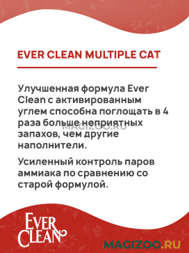 В результате добавления 0,5 % активированного угля, улучшенная формула Ever Clean поглощает в 4 раза больше запахов, чем остальные кошачьи наполнители.