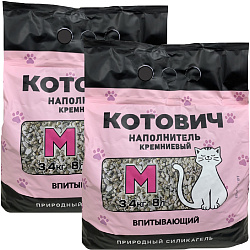 Впитывающий наполнитель КОТОВИЧ М из кремниевого минерала с добавлением антибактериальных гранул для кошечьего туалета.