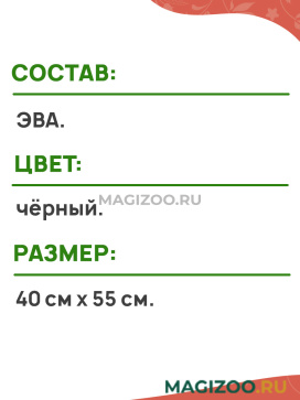 Материал ЭВА, из которого изготовлено изделие - легкий, не вызывает аллергии, гигиеничный, стойкий к воздействию бактерий, эластичный и упругий, теплый, т.к. имеет пористую структуру.
