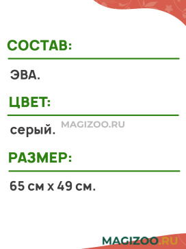 Материал ЭВА, из которого изготовлено изделие - легкий, не вызывает аллергии, гигиеничный, стойкий к воздействию бактерий, эластичный и упругий, теплый, т.к. имеет пористую структуру.