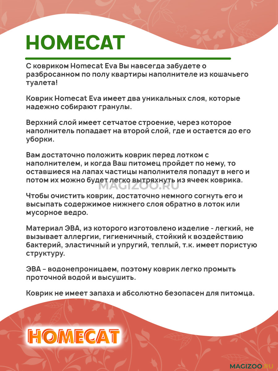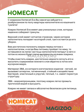 С ковриком Homecat Eva Вы навсегда забудете о разбросанном по полу квартиры наполнителе из кошачьего туалета!
