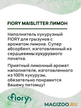Наполнитель кукурузный FIORY для грызунов с ароматом лимона. Супер абсорбент, изготовленный из сердцевины кукурузного початка.