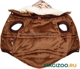 Куртка со съемным капюшоном, который закрывает шею собаки и защищает от ветра и осадков. Украшен красивым искусственным мехом.