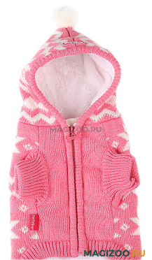 Очень теплая и красивая вязаная курточка на подкладе из искусственного меха с капюшоном для Вашего питомца. Удобно надевать и снимать!