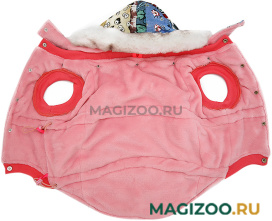 Куртка со съемным капюшоном, который закрывает шею собаки и защищает от ветра и осадков. Украшен красивым искусственным мехом.