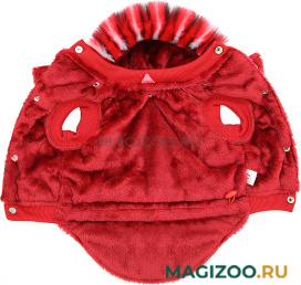 Куртка со съемным капюшоном, который закрывает шею собаки и защищает от ветра и осадков. Украшен красивым искусственным мехом.