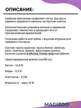 Удобное крепление позволяет легко, быстро и надежно закрепить палочку на прутьях клетки.