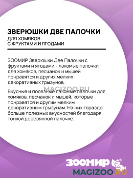 ЗООМИР Зверюшки Две Палочки с фруктами и ягодами - лакомые палочки для хомяков, песчанок и мышей понравятся и других мелких декоративных грызунов.
