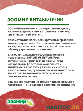 ЗООМИР Витаминчик для укрепления зубов у маленьких декоративных грызунов, хомяков, крыс, мышей и песчанок.