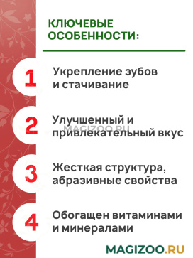 Рекомендации по кормлению: давать в качестве лакомого и полезного дополнения к питанию отдельно или вместе с основным кормом.