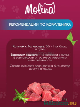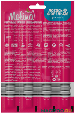 • ингредиенты, входящие в состав корма Molina, сертифицированы как пригодные для питания человека и производятся на территории ЕС.