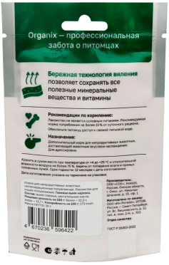 Лакомство ORGANIX – 100 % мясо для Вашего питомца! Такое лакомство прекрасно усваивается и великолепно пополняет запасы белка высокого качества с хорошей степенью усвояемости. А еще оно очень вкусное и ароматное!