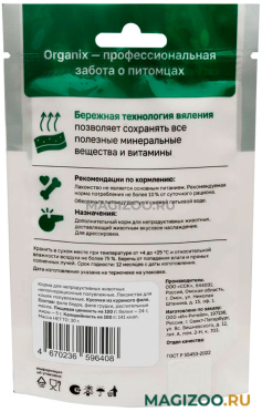 Лакомство ORGANIX – 100 % мясо для Вашего питомца! Такое лакомство прекрасно усваивается и великолепно пополняет запасы белка высокого качества с хорошей степенью усвояемости. А еще оно очень вкусное и ароматное!