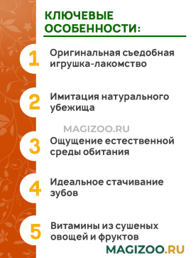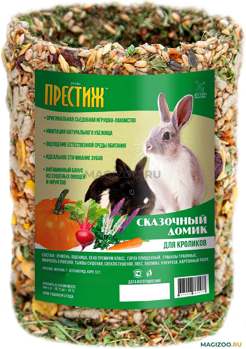 "Сказочный домик" для кроликов - это прекрасное лакомство для домашних грызунов с оригинальным вкусом. Лакомство для грызунов не только порадует их вкусом, но и послужит в качестве удобного места для ночлега.