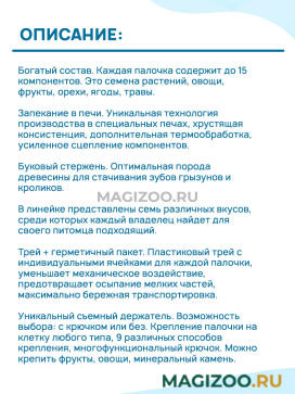 Лакомство является источником витаминов и минералов, а также прекрасной игрушкой для грызунов и кроликов.