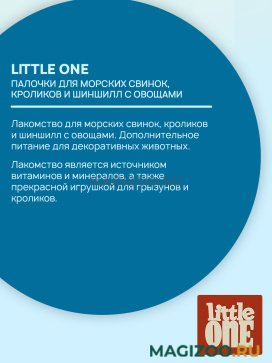 Информация о составе и ингредиентах, цветовом решении, технических и иных характеристиках, стране-изготовителе, внешнем виде и комплекте поставки товара носит справочный характер и основана на последних доступных к моменту публикации сведениях. Доставка данного товара осуществляется во все регионы РФ.Продукция бренда Little One – это 100% натуральные продукты питания и товары для ухода за декоративными животными, которые разработаны с учетом индивидуальных особенностей, пищевых потребностей и вкусовых предпочтений питомцев.