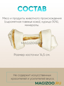 Уникальное запатентованное лакомство для собак из качественного куриного мяса, завернутого в жесткую оболочку из сыромятной кожи.