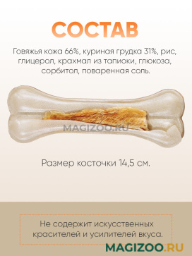 Уникальное запатентованное лакомство для собак из качественного куриного мяса, завернутого в жесткую оболочку из сыромятной кожи.