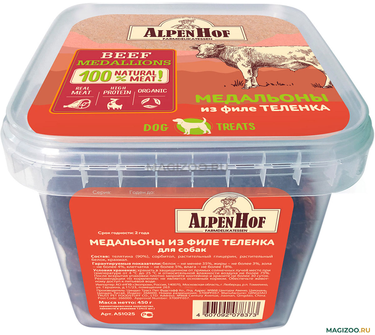 AlpenHof Медальоны из филе теленка — это натуральное мясное лакомство класса холистик.