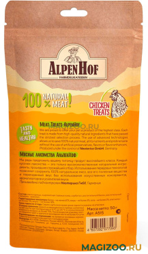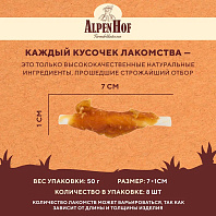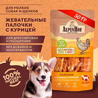 AlpenHof палочки жевательные с курицей для собак маленьких пород и щенков – это натуральное мясное лакомство класса холистик. Превосходное угощение для любимой собаки.
