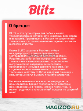 BLITZ соответствует по своему качеству зарубежным кормам суперпремиум-класса.