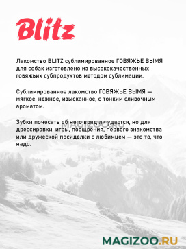 Лакомство BLITZ сублимированное ГОВЯЖЬЕ ВЫМЯ для собак изготовлено из высококачественных говяжьих субпродуктов методом сублимации.