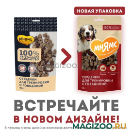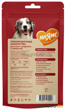 Тренировочное лакомство МНЯМС сердечки с говядиной для взрослых собак и щенков старше 3-х месяцев предназначены для поощрения питомца во время прогулки и дрессировки.