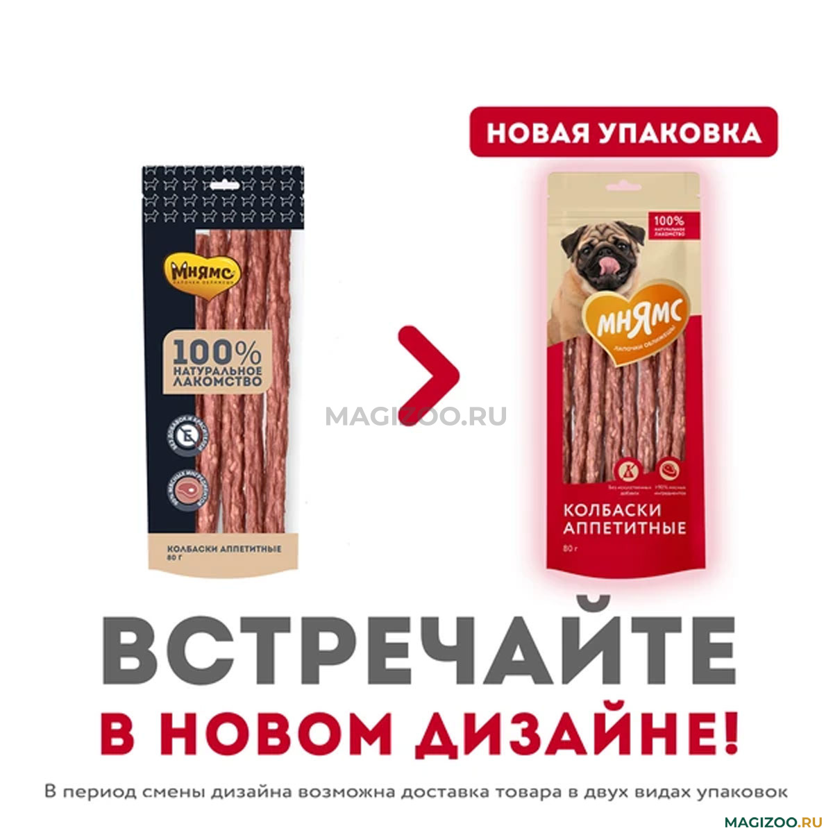 Популярное лакомство МНЯМС аппетитные колбаски с говядиной и курицей для Вашего питомца!