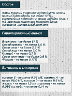 Мясо и мясные субпродукты (говядина 52%, курица 40%), растительные масла, гидролизат печени говяжьей, минеральные вещества, смесь токоферолов и экстракт розмарина..