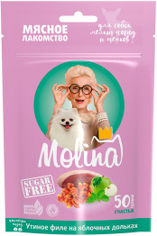 В интернет-зоомагазине MAGIZOO.RU представлен большой выбор натуральных полезных лакомств для взрослых собак компании Molina. Они изготовлены из отборных ингредиентов и абсолютно безопасны для здоровья домашних животных. В нашем каталоге вы найдете специальную линейку лакомств Molina, которая разработана специально для представителей мелких пород.