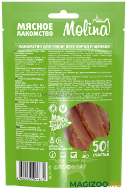 Натуральные мясные лакомства MOLINA давно завоевали сердца многих питомцев и их хозяев. Разнообразие видов и вкусов навсегда покорит сердце даже самого привередливого четвероногого гурмана!