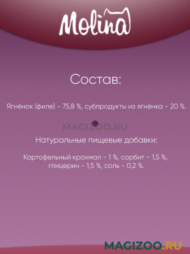 Лакомство MOLINA в виде нарезки из ягненка – побалуйте своего питомца вкусным и полезным лакомством!
