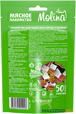 Натуральные мясные лакомства MOLINA давно завоевали сердца многих питомцев и их хозяев. Разнообразие видов и вкусов навсегда покорит сердце даже самого привередливого четвероногого гурмана!