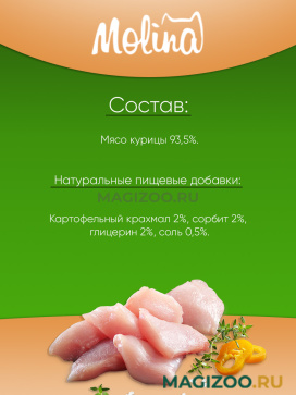 Лакомство MOLINA для взрослых собак и щенков всех пород в виде куриных палочек – побалуйте своего питомца вкусным и полезным лакомством!